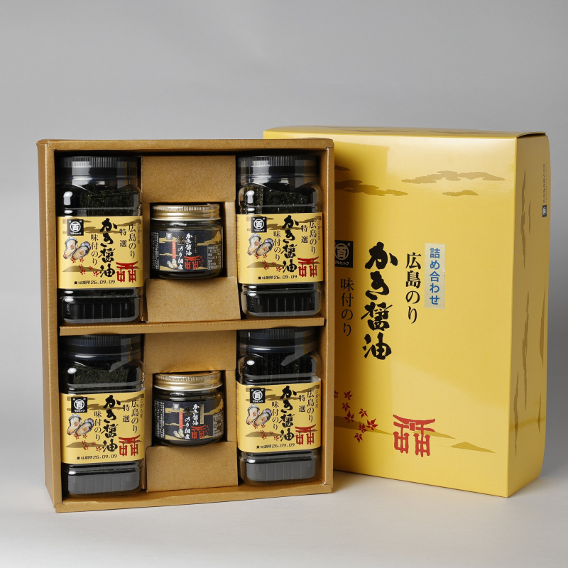 「かき醤油味付のり」と「かき醤油生のり佃煮」のセット。