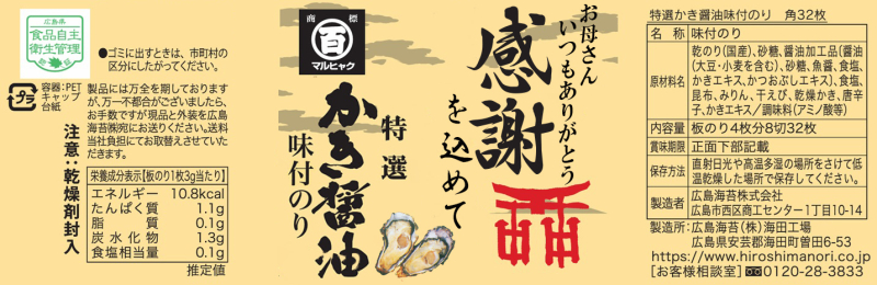 【母の日ラベル】特選かき醤油味付のり4本入(特かき-20H)